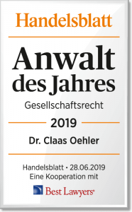 • Claas Oehler was included in the 2019 Edition of The Best Lawyers in Germany for Corporate Law.
